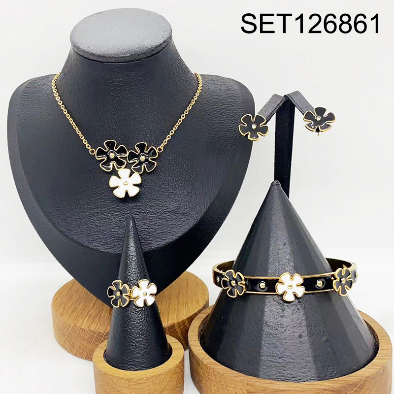 Level B Stainless Steel New Trendy Women Jewelry Drip Oil/Enamel Flower Golden 4pcs SET