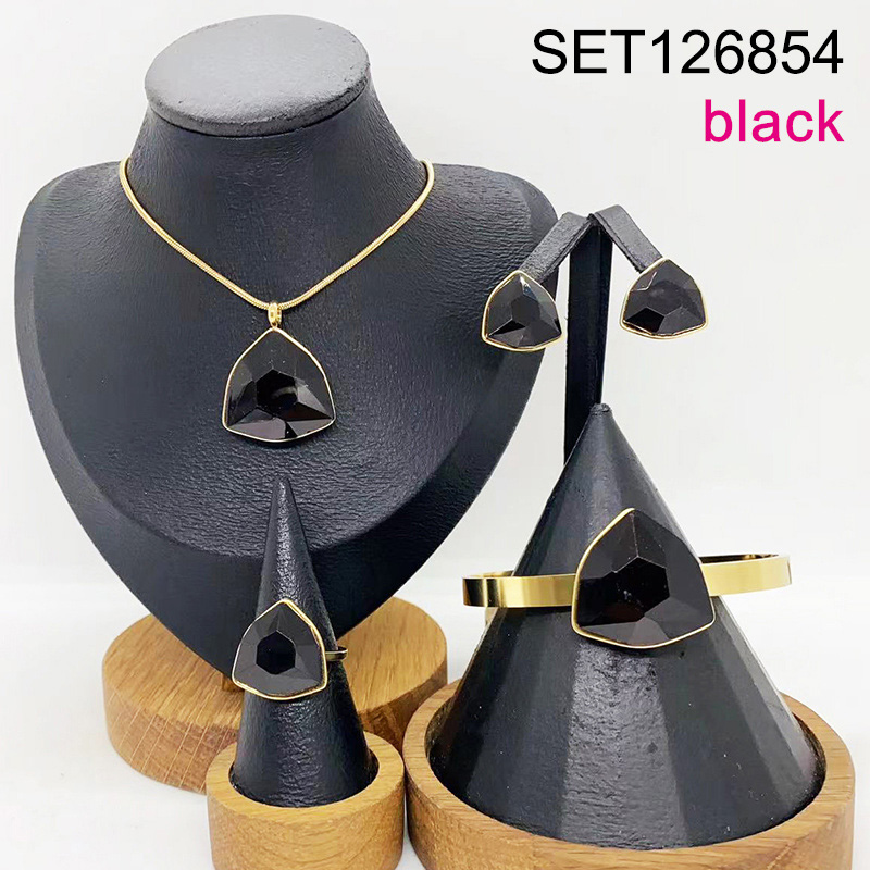 Level B Stainless Steel New Trendy Women Jewelry Triangle Golden 4pcs SET