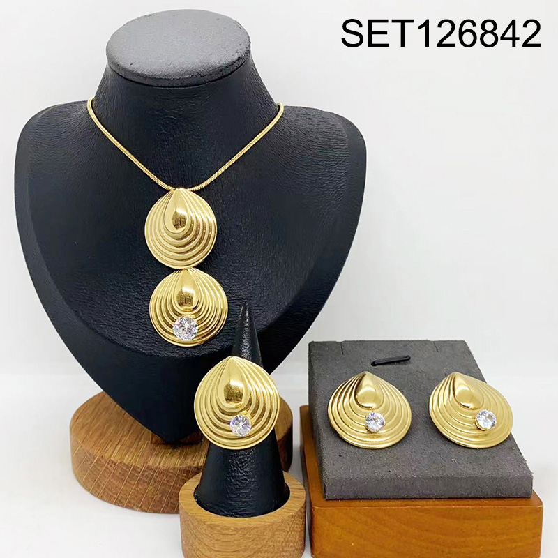 Level B Stainless Steel New Trendy Women Jewelry Round Water Drip Golden 3pcs SET