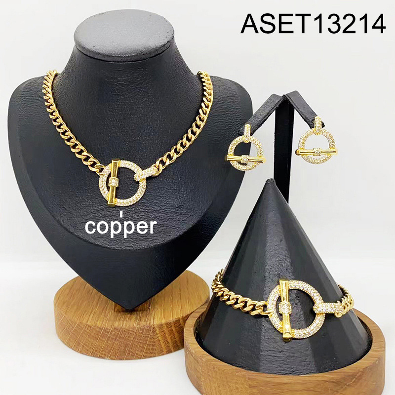 Level B Fashion Jewelry New Trendy Women Jewelry Round Golden 3pcs SET;Material:copper (cobre)
