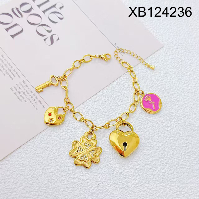 Level B Stainless Steel New Trendy Women Jewelry SYC Lock Key Flower Golden Bracelet
