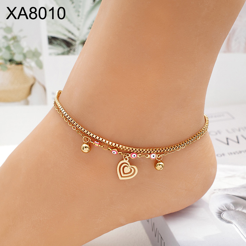 Level B Stainless Steel New Trendy Women Jewelry Two Layers Chain Heart Golden Valentine's Day Anklet