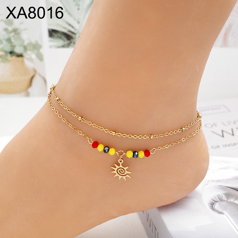 Level B Stainless Steel New Trendy Women Jewelry Two Layers Chain Flower Golden Anklet