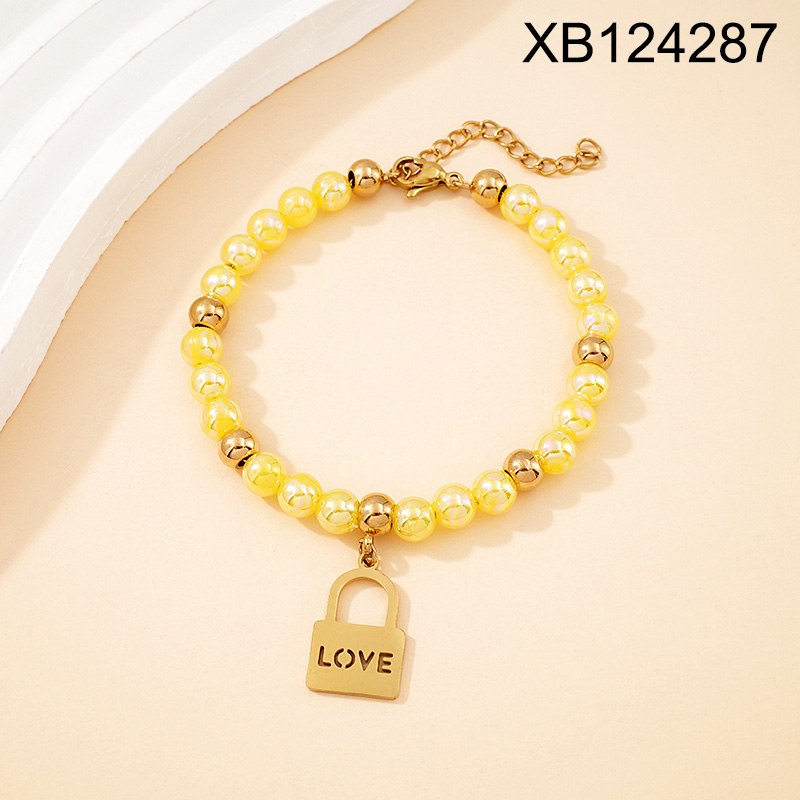 Home > Level B Stainless Steel New Trendy Women Jewelry Lock Love Golden Valentine's Day Bracelet
