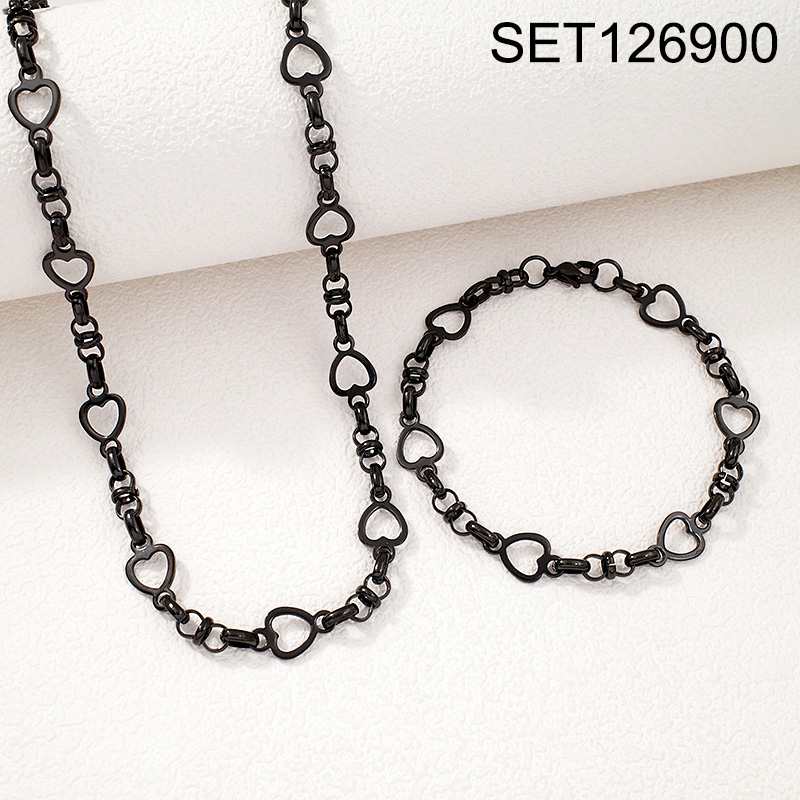Level B Stainless Steel New Trendy Man Jewelry Valentine's Day Heart Plating Black Chain SET