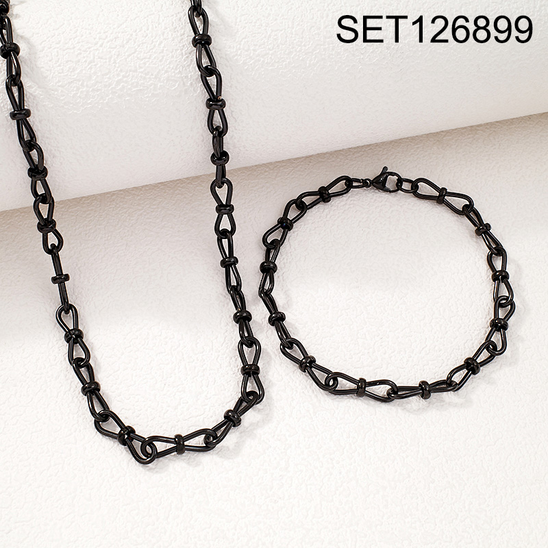 Level B Stainless Steel New Trendy Man Jewelry Plating Black Chain SET