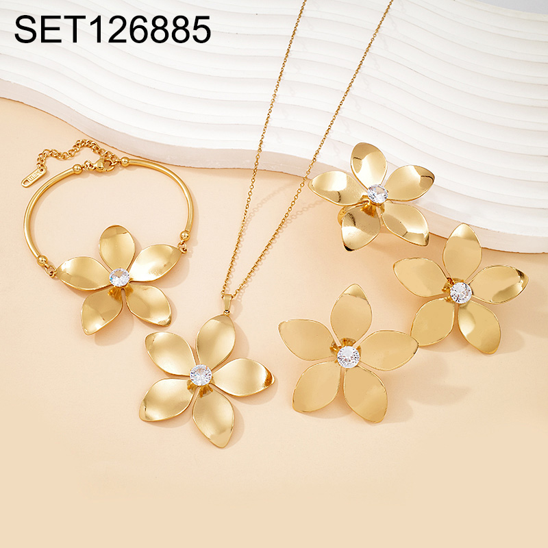 Level B Stainless Steel New Trendy Women Jewelry Flower Golden 4pcs SET