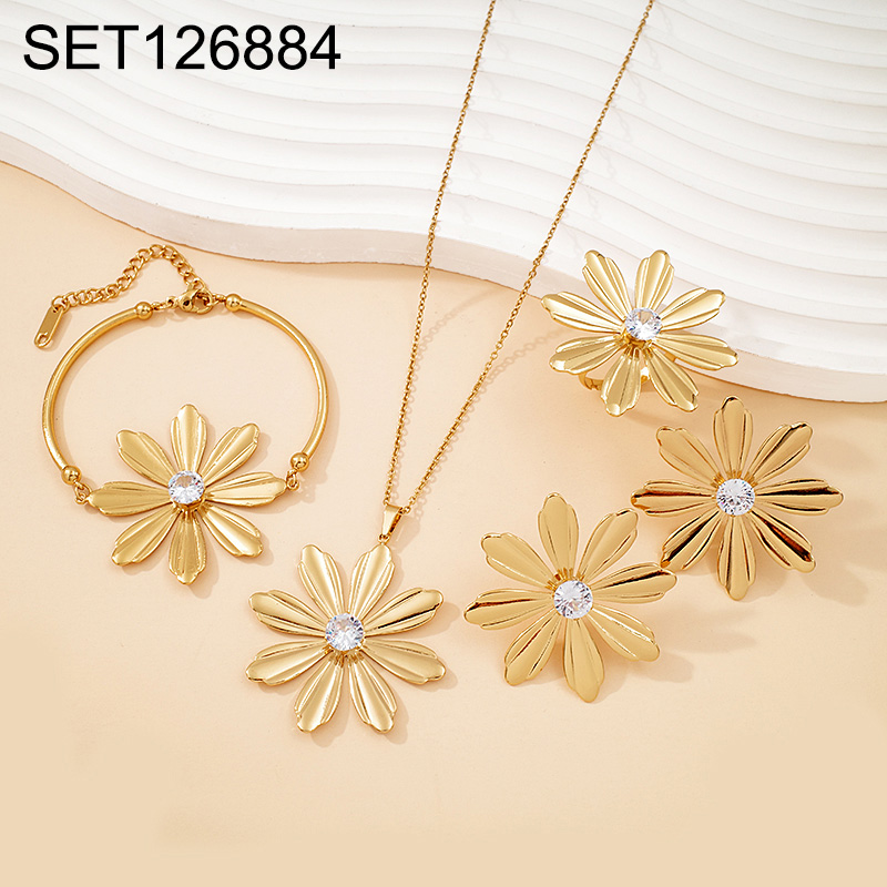 Level B Stainless Steel New Trendy Women Jewelry Flower Golden 4pcs SET