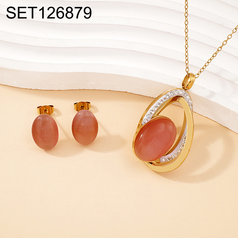 Home > Level B Stainless Steel New Trendy Women Jewelry Oval Opal Golden SET