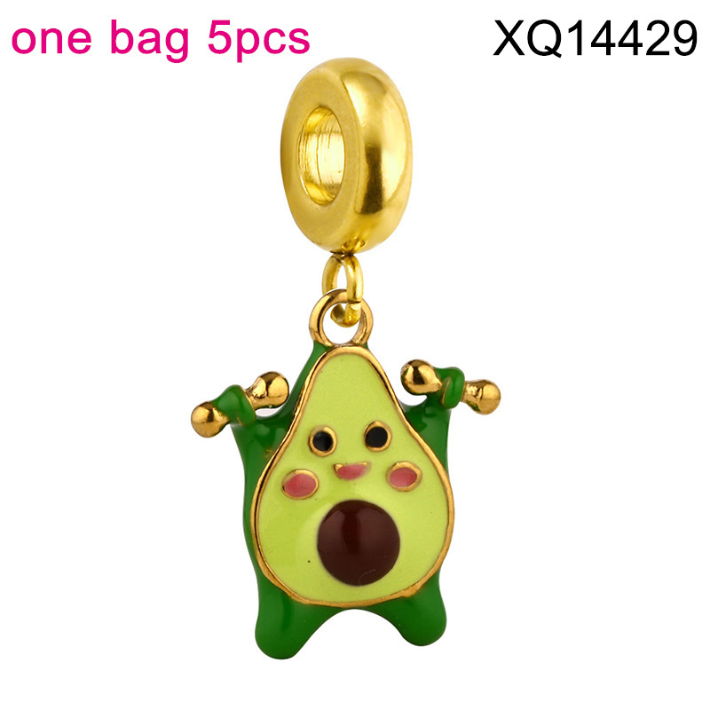 Level B Stainless Steel New Trendy Jewelry Summer fruit style Drip Oil/Enamel Avocado Goldlen DIY Charms