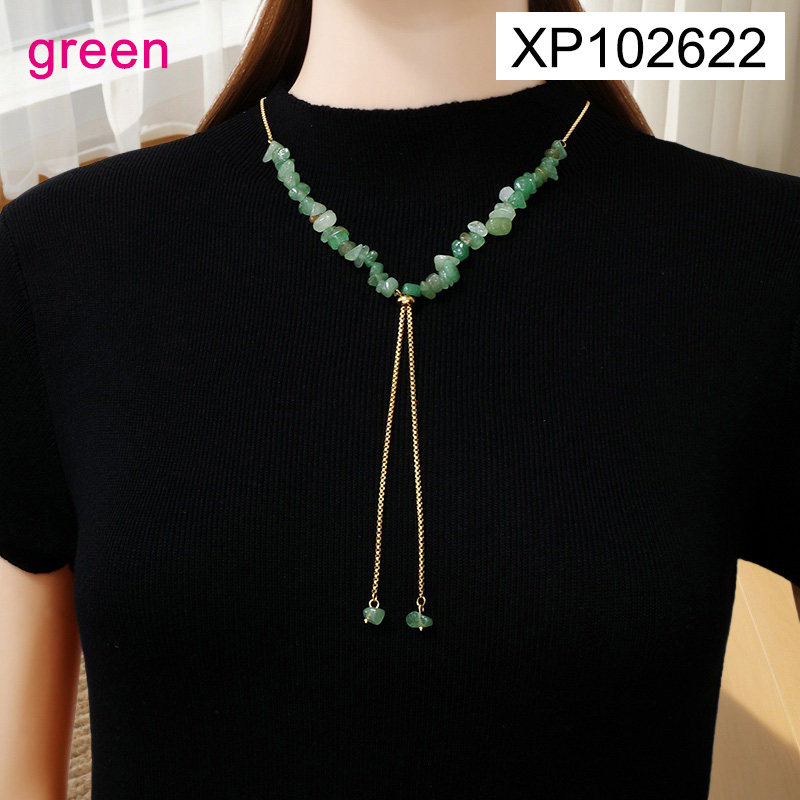 Home > Level B Stainless Steel New Trendy Women Jewelry Green Natural Stone Golden Sweater Chain Pendant