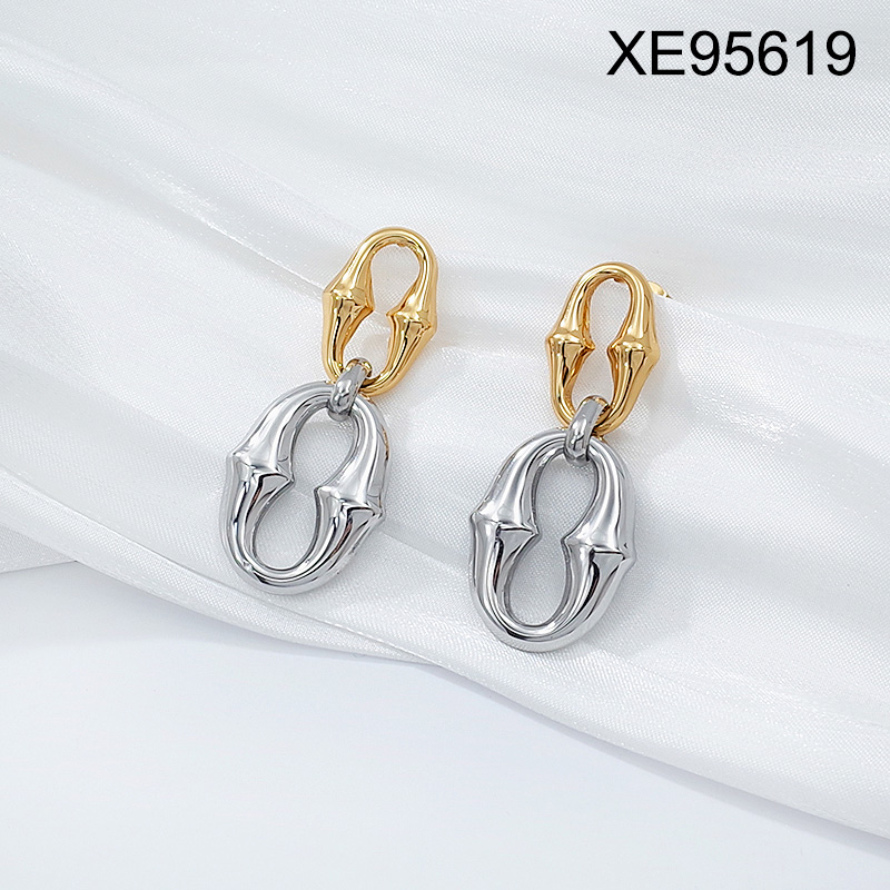 Level B Stainless Steel New Trendy Women Jewelry Pig nose Oval Two Tone Earrings