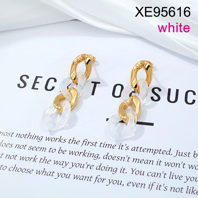 Home > Level B Stainless Steel New Trendy Women Jewelry White Resin Golden Chain Earrings