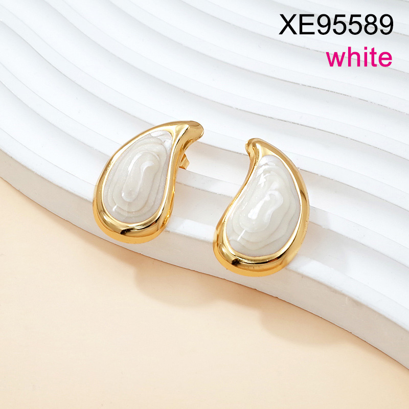 Level B Stainless Steel New Trendy Women Jewelry Drip Oil/Enamel White Water Drip Golden Earrings