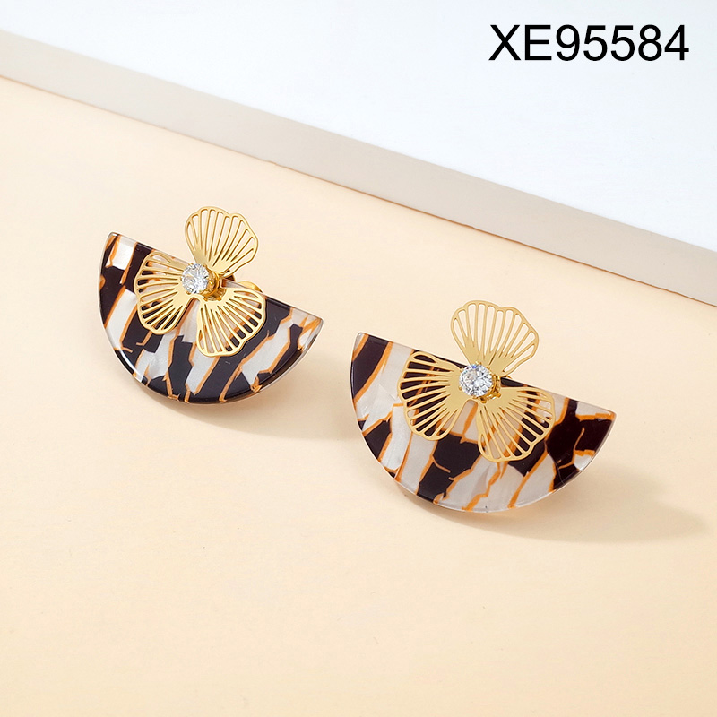 Level B Stainless Steel New Trendy Women Jewelry Semicircle Flower Golden Earrings
