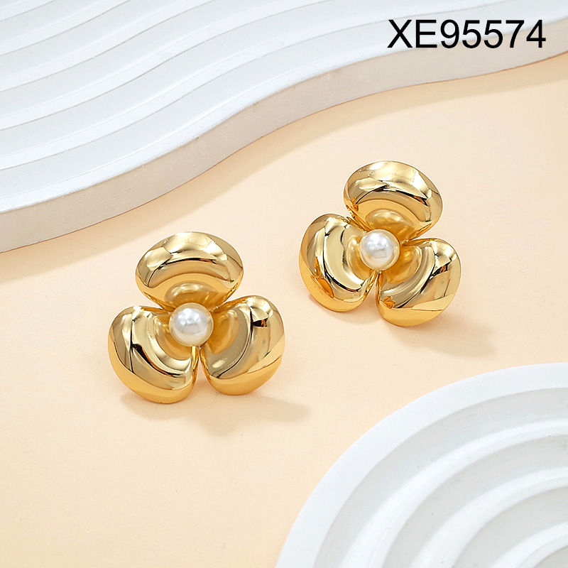 Level B Stainless Steel New Trendy Women Jewelry Pearl Style/Plastic Beads Flower Golden Earrings