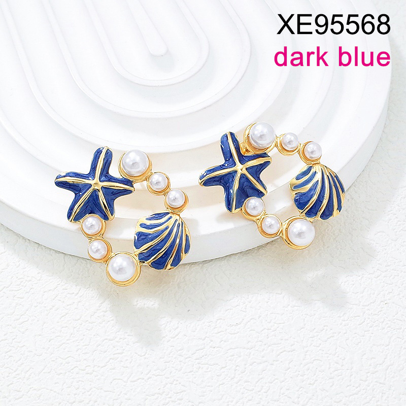 Home > Level B Stainless Steel New Trendy Women Jewelry Pearl Style/Plastic Beads Summer beach Drip Oil/Enamel Dark Blue Animal Shell Starfish Golden Earrings