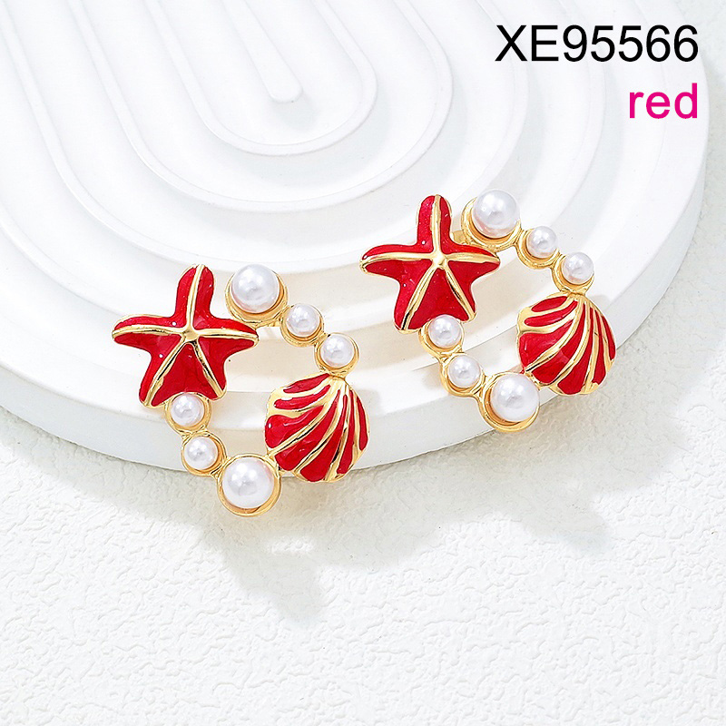 Home > Level B Stainless Steel New Trendy Women Jewelry Pearl Style/Plastic Beads Summer beach Drip Oil/Enamel Red Animal Shell Starfish Golden Earrings