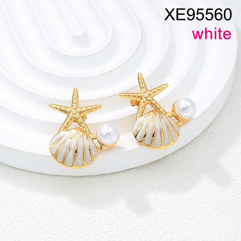Home > Level B Stainless Steel New Trendy Women Jewelry Pearl Style/Plastic Beads Summer beach Drip Oil/Enamel White Animal Shell Starfish Golden Earrings