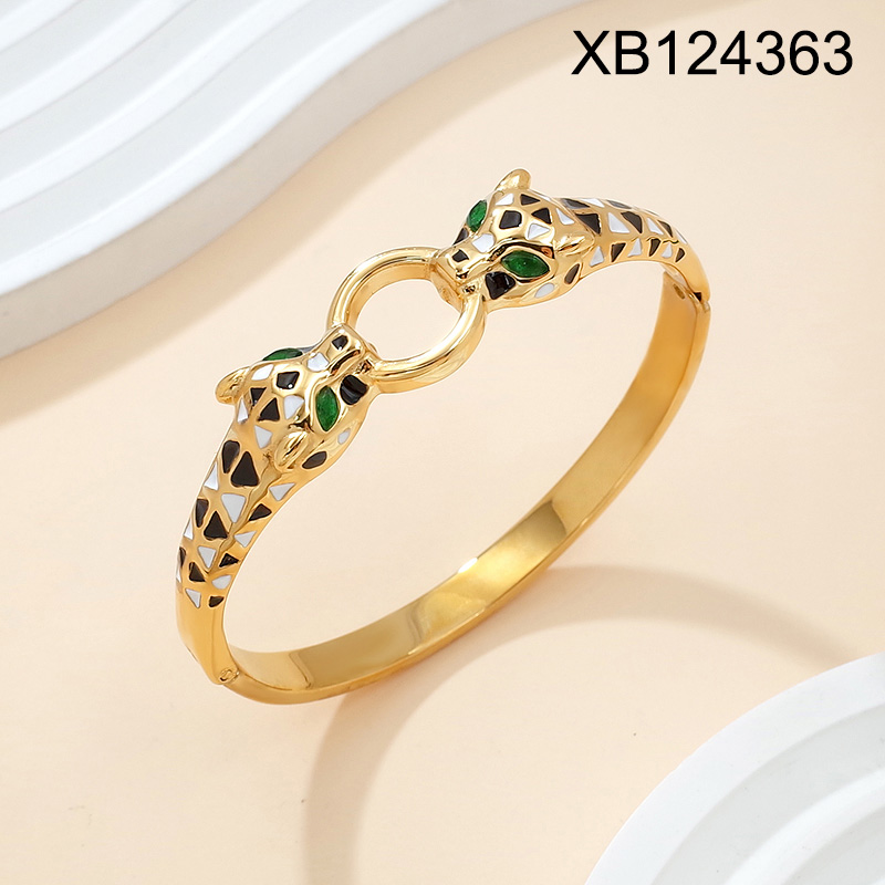 Level B Stainless Steel New Trendy Women Jewelry Animal Leopard Golden Bangle