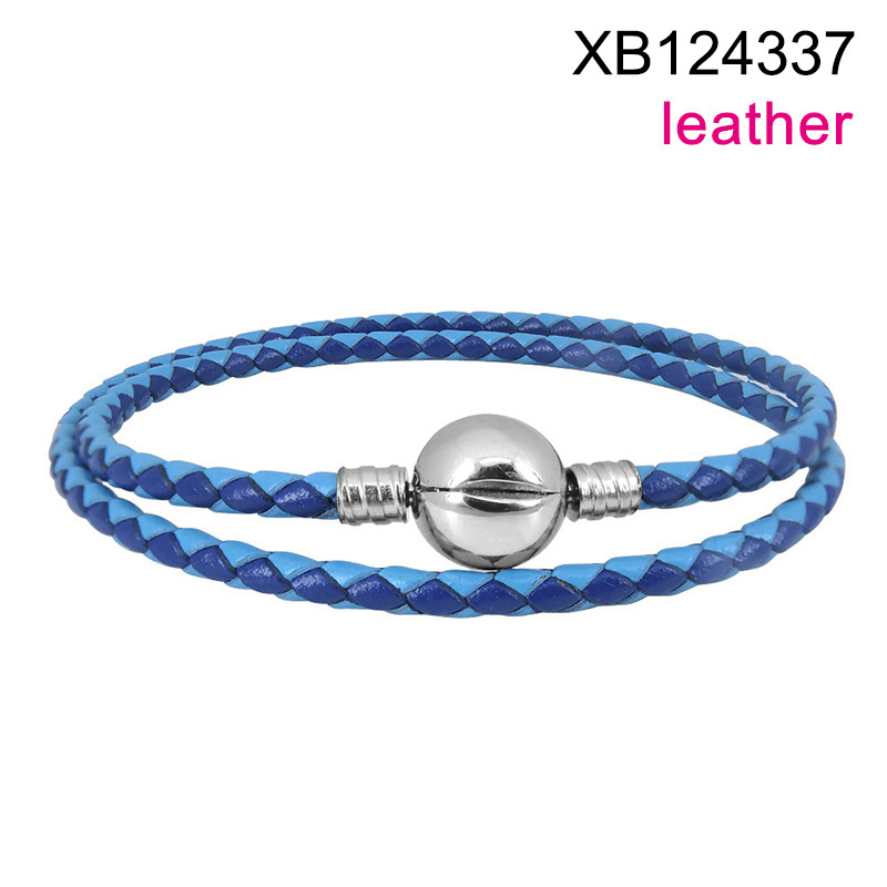 Level B Stainless Steel New Trendy Women Jewelry Two Layers Chain Steel color Leather Bracelet