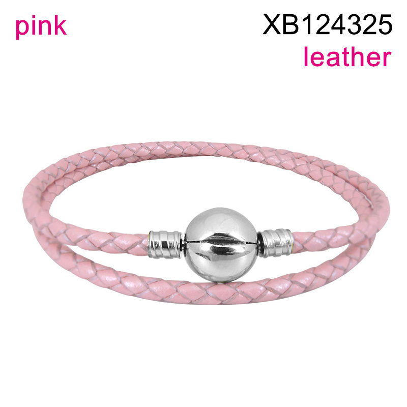 Level B Stainless Steel New Trendy Women Jewelry Two Layers Chain Steel color Leather Bracelet