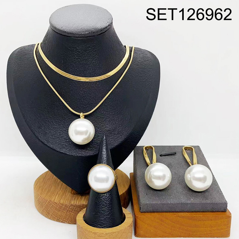 Level B Stainless Steel New Trendy Women Jewelry Two Layers Chain Pearl Style/Plastic Beads Golden 3pcs SET