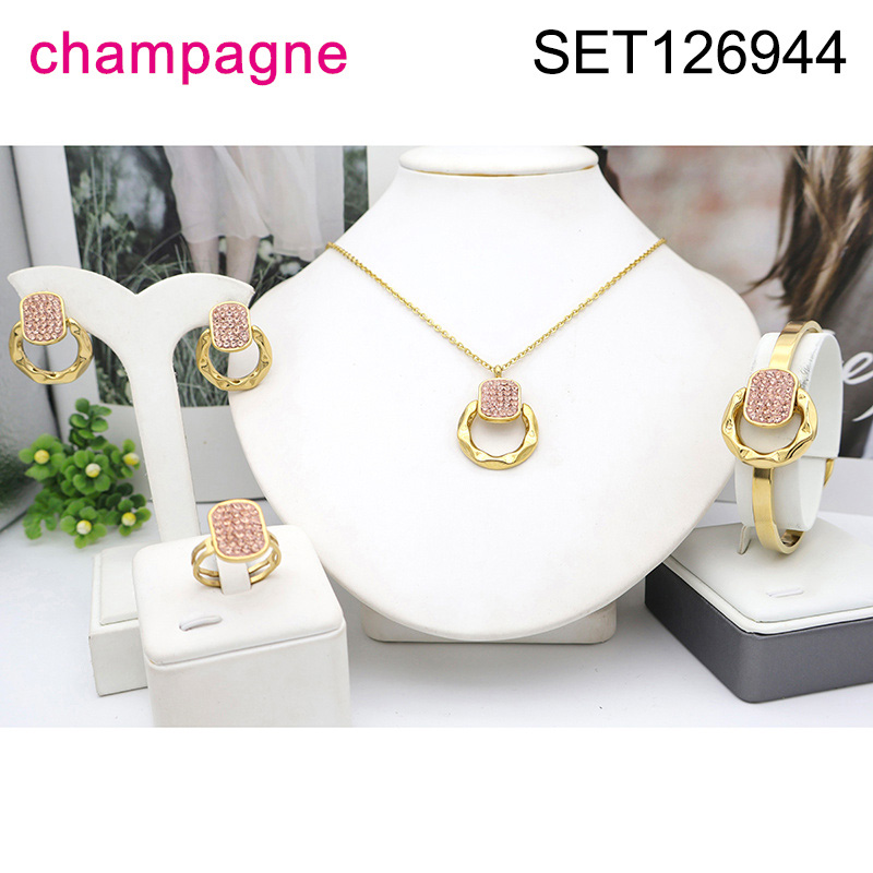 Level B Stainless Steel New Trendy Women Jewelry Champagne Clay Sticky Rhinestone Geometry Golden 4pcs SET