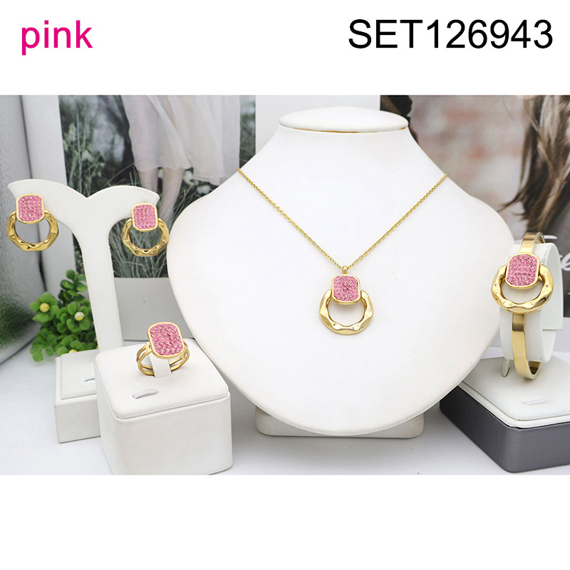 Level B Stainless Steel New Trendy Women Jewelry Pink Clay Sticky Rhinestone Geometry Golden 4pcs SET