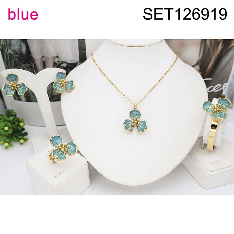 Home > Level B Stainless Steel New Trendy Women Jewelry Drip Oil/Enamel Blue Flower Golden 4pcs SET