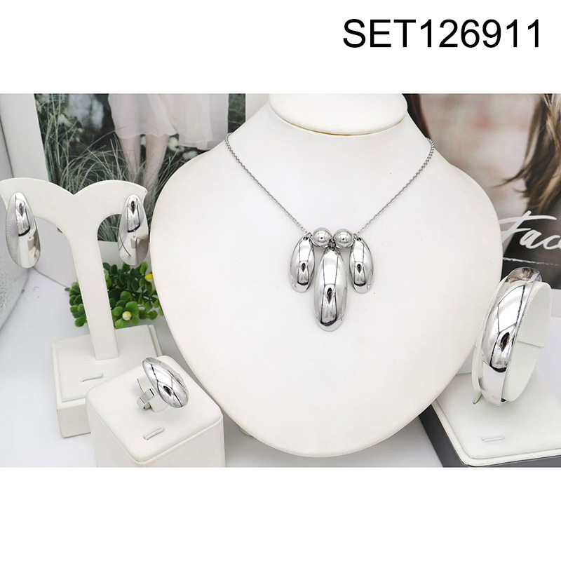 Level B Stainless Steel New Trendy Women Jewelry Water Drip Steel color 4pcs SET