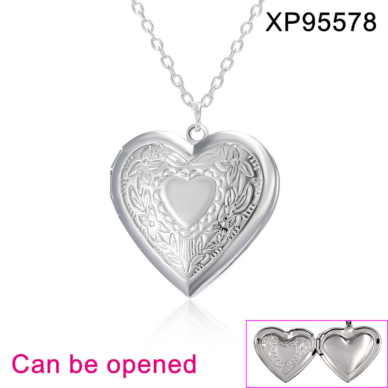 Home > Level B Stainless Steel Jewelry New Trendy Carved Heart Openable Photo Frame Steel color Valentine's Day Pendant