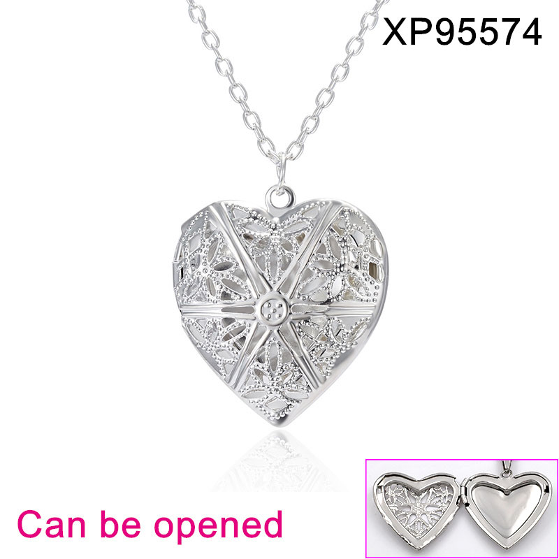 Home > Level B Stainless Steel Jewelry New Trendy Carved Heart Openable Photo Frame Steel color Valentine's Day Pendant