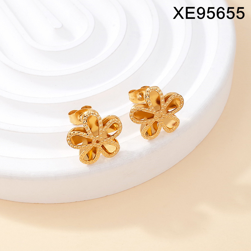 Home > Level A Stainless Steel New Trendy Women Jewelry Flower Golden Earrings