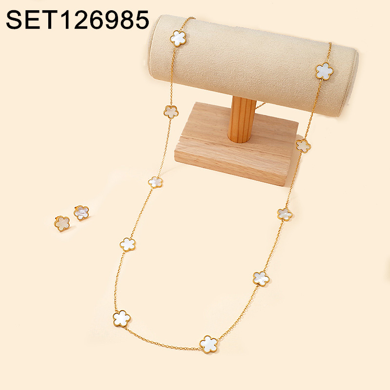 Home > Level A Stainless Steel New Trendy Women Jewelry Flower Golden Sweater chain SET