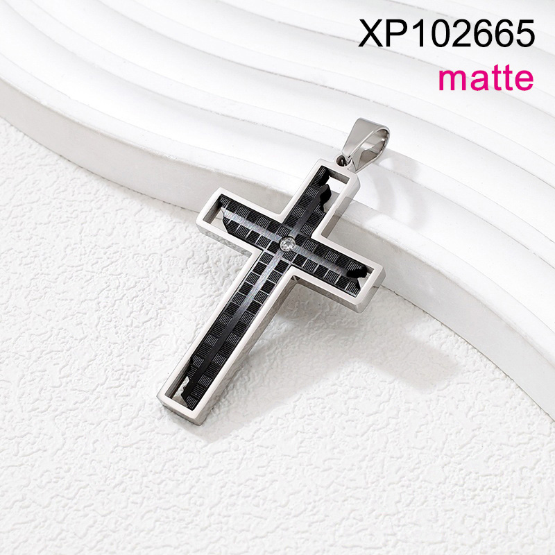 Level B Stainless Steel New Trendy Man Jewelry Cross Two Tone Matte Pendant