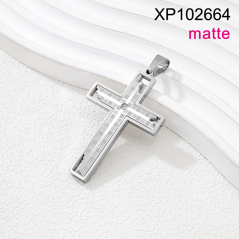 Level B Stainless Steel New Trendy Man Jewelry Cross Steel color Matte Pendant