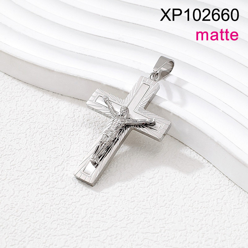 Level B Stainless Steel New Trendy Man Jewelry Jesus Cross Steel color Matte Pendant
