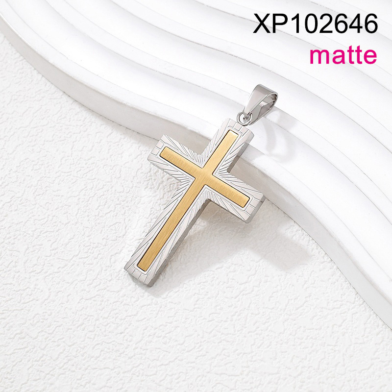 Level B Stainless Steel New Trendy Man Jewelry Cross Two Tone Matte Pendant