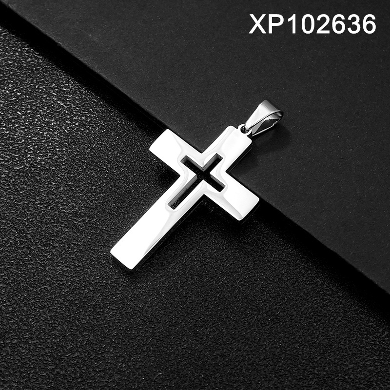 Level B Stainless Steel New Trendy Man Jewelry Cross Steel color Pendant