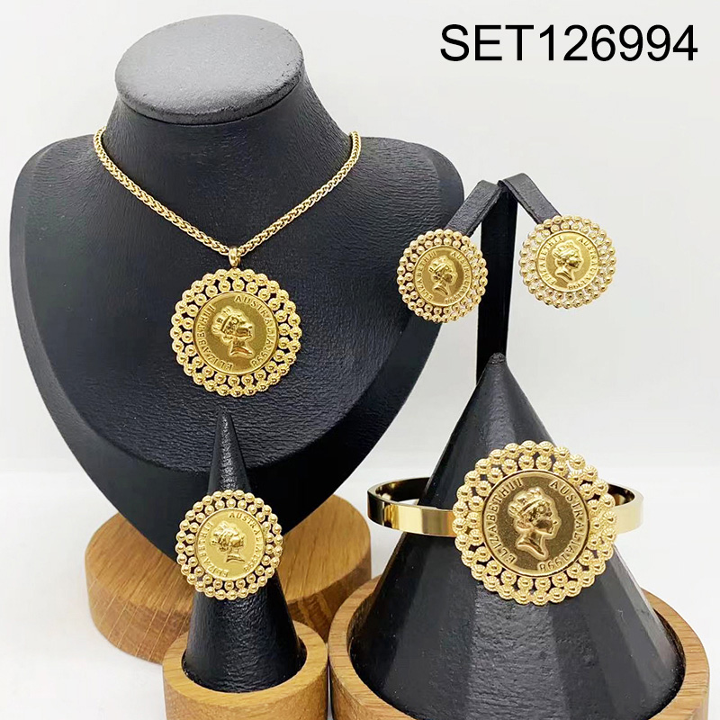 Level B Stainless Steel New Trendy Women Jewelry Round Coin People Golden 4pcs SET