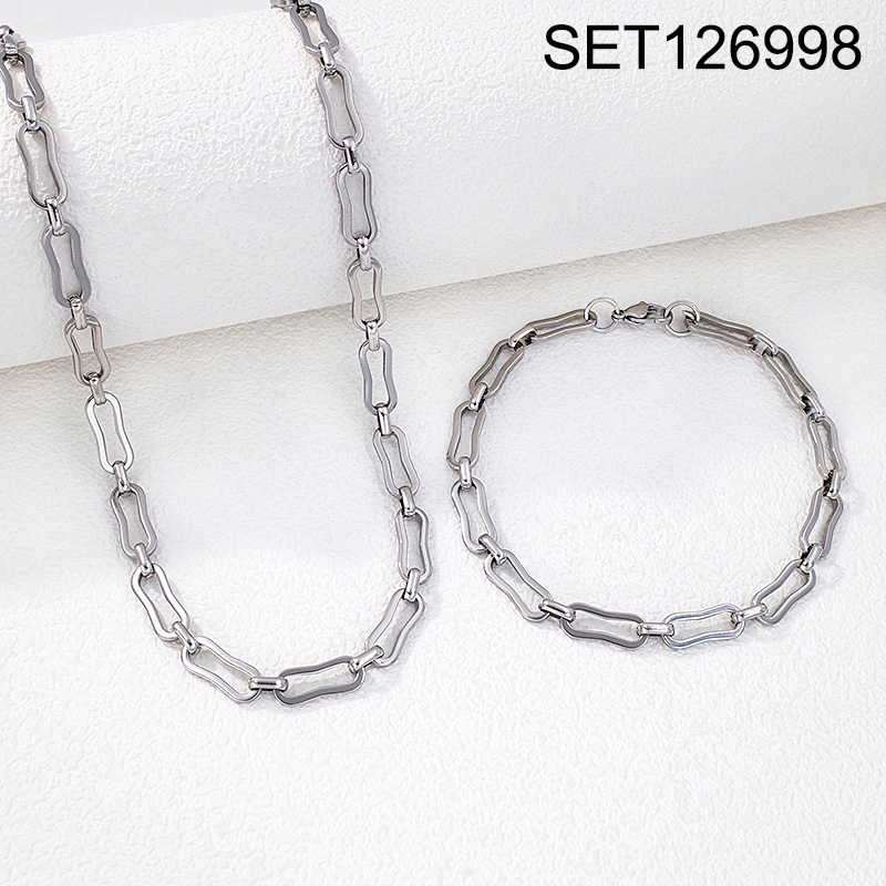 Level B Stainless Steel New Trendy Man Jewelry Steel color Chain SET