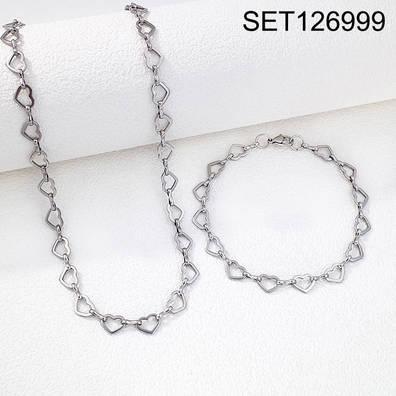 Home > Level B Stainless Steel New Trendy Man Jewelry Heart Steel color Valentine's Day Chain SET