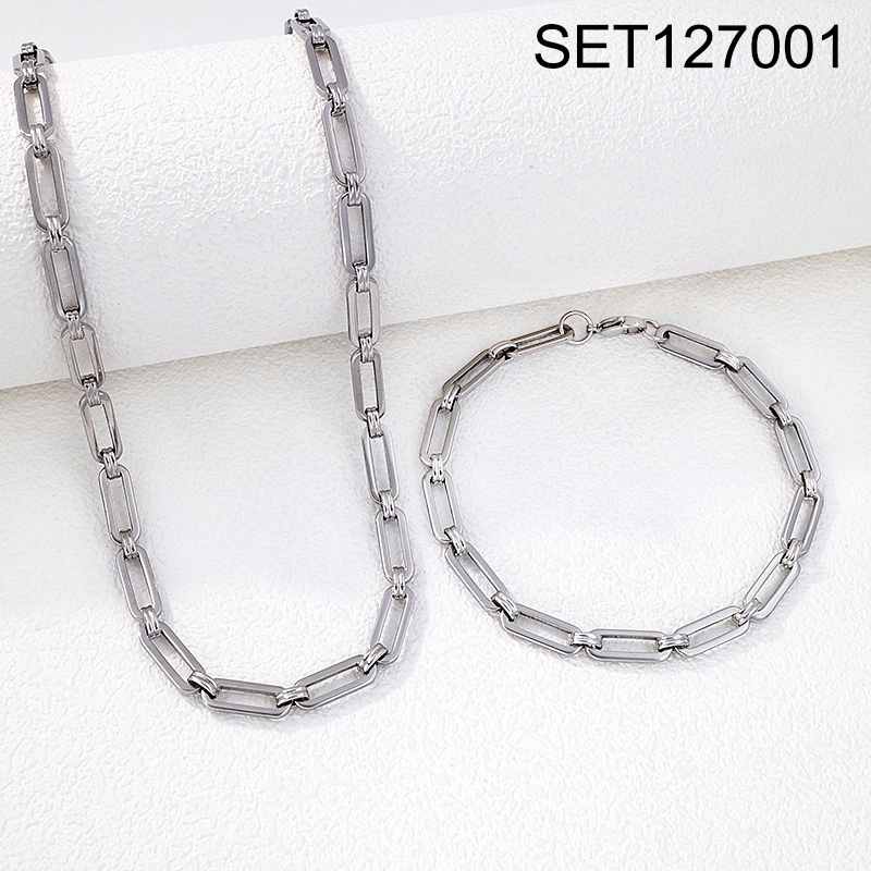 Home > Level B Stainless Steel New Trendy Man Jewelry Steel color Chain SET