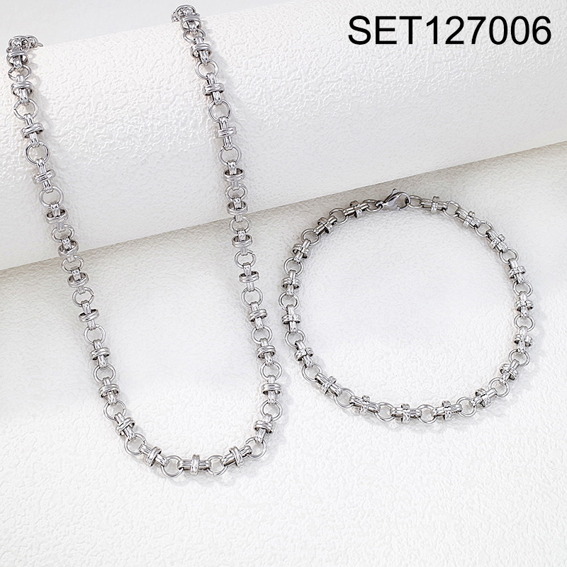Home > Level B Stainless Steel New Trendy Man Jewelry Steel color Chain SET