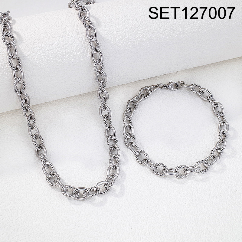 Level B Stainless Steel New Trendy Man Jewelry Steel color Chain SET