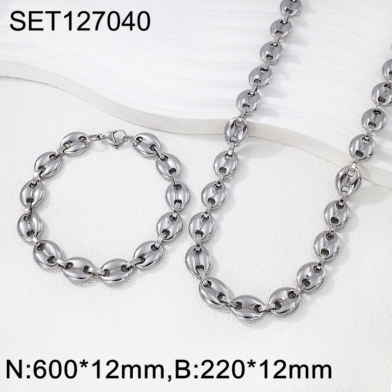 Level B Stainless Steel New Trendy Man Jewelry Pig nose Coffee Beans Steel color Thick Chain SET