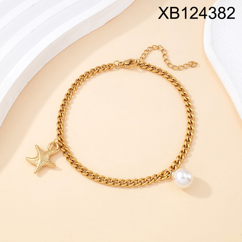Level B Stainless Steel New Trendy Women Jewelry Pearl Style/Plastic Beads Summer beach Animal Starfish Golden Bracelet