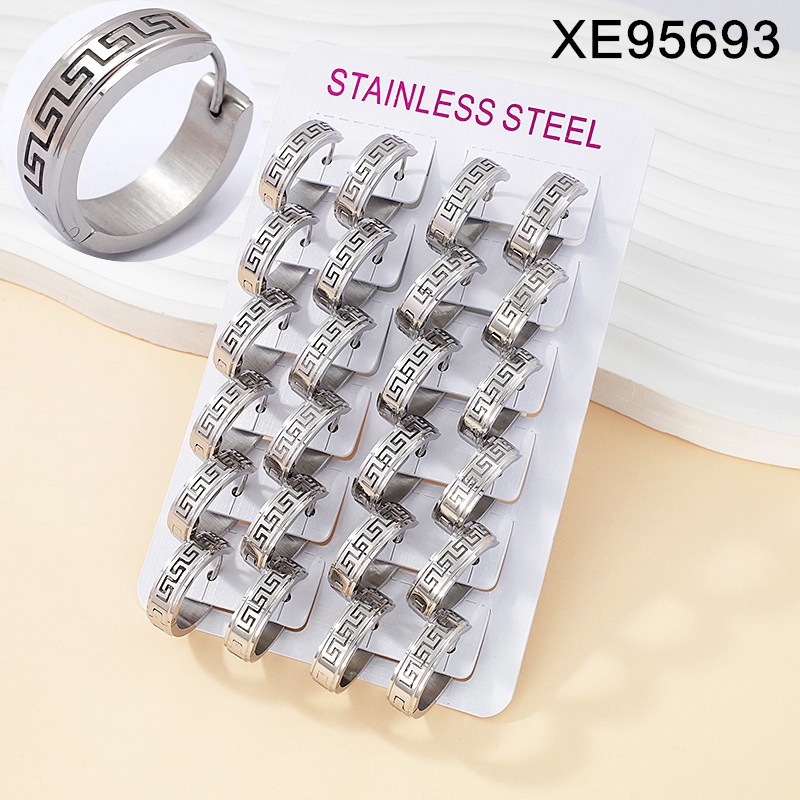 Home > Level B Stainless Steel New Trendy Women Jewelry Great Wall Pattern Steel color Hoop Earrings