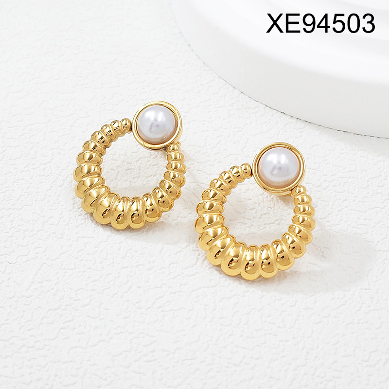 Level B Stainless Steel New Trendy Women Jewelry Pearl Style/Plastic Beads Round Golden Earrings